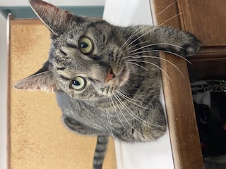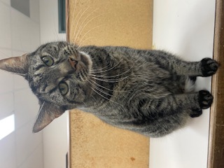 Meet Silver, a charming grey tabby with a great personality! Silver is a 6 year old neutered male, and an independent spirit. He may not be the cuddliest of cats, but loves head rubs and to lounge around near you while you do your work. He also enjoys sitting in sun beams, feather toys, and treats.